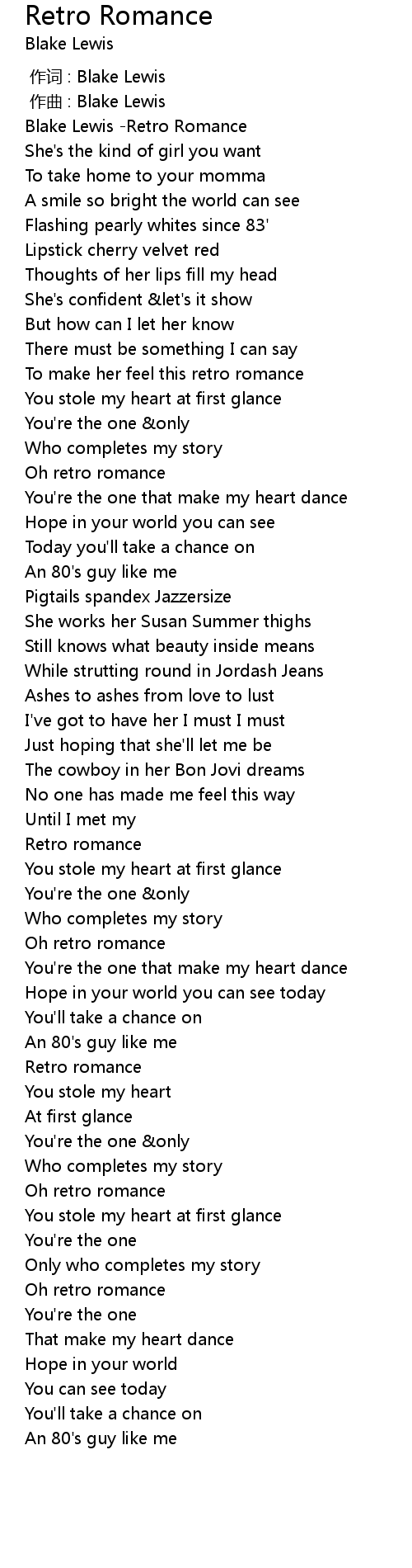 | [00:00.280] | Blake Lewis -Retro Romance |