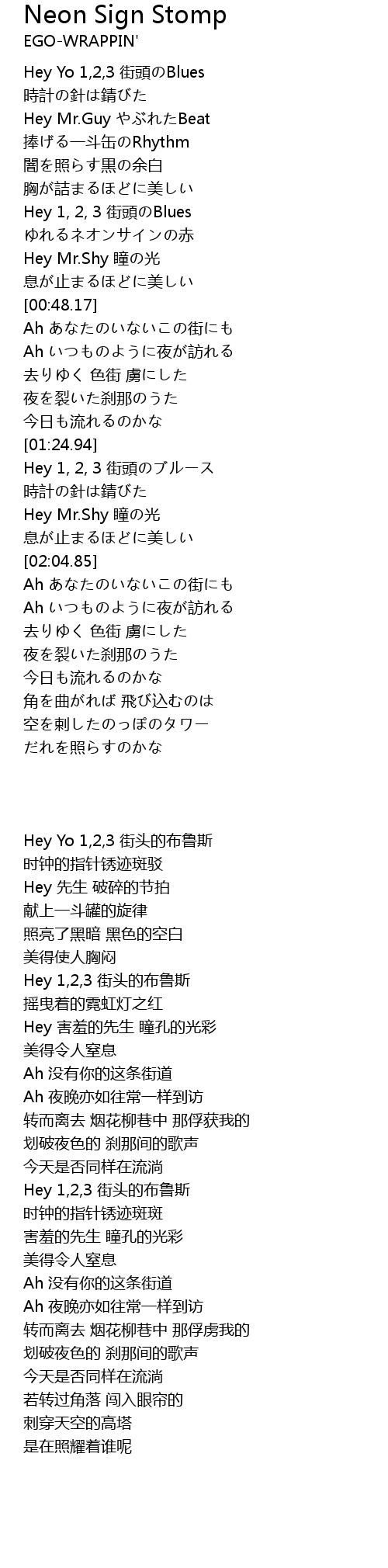 | [00:32.46] | Hey 1, 2, 3 jiē tóu Blues |