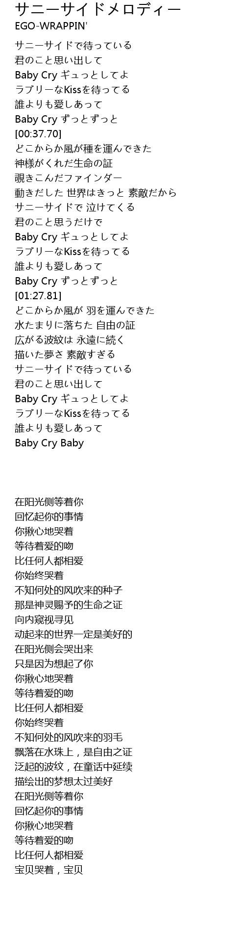 | [01:58.96] | Baby Cry ギュっとしてよ |