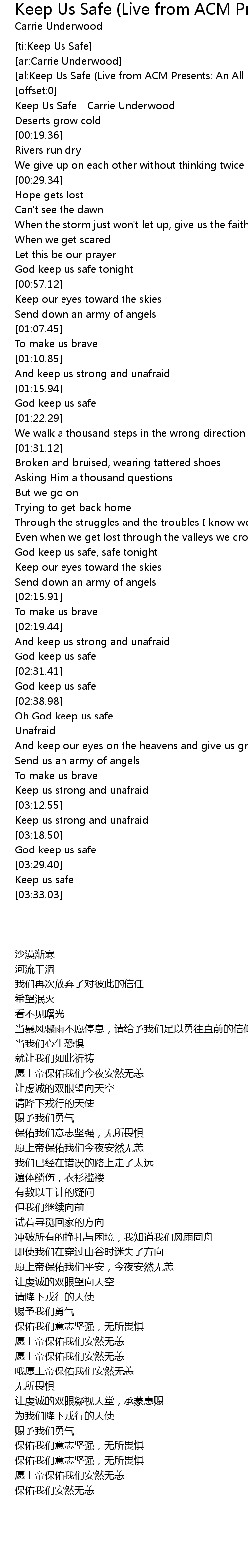 [al:Keep Us Safe (Live from ACM Presents: An All-Star Salute to the Troops)] |