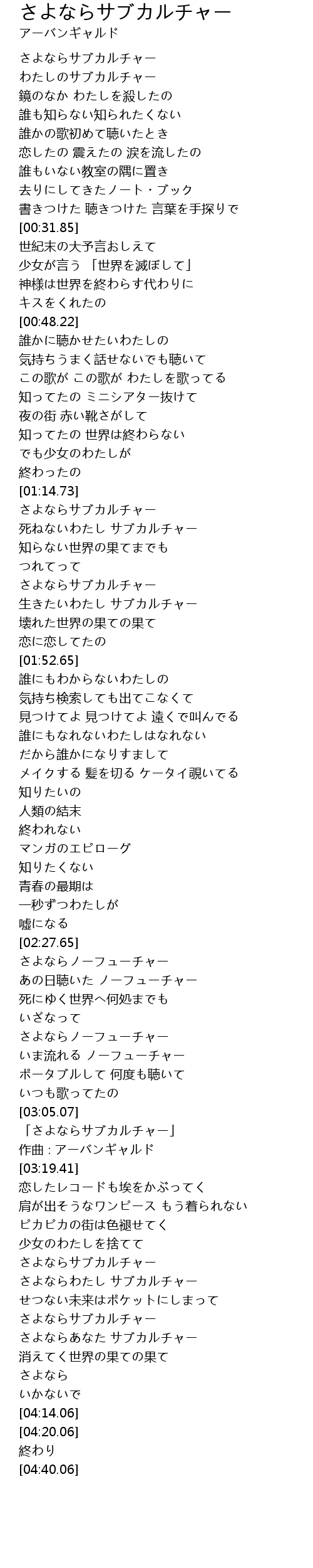| [03:37.35] | さよならサブカルチャー |