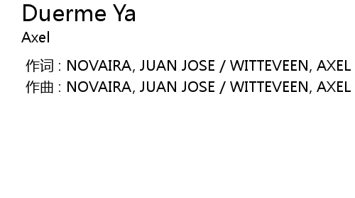 | [00:00.000] | 作词 : NOVAIRA, JUAN JOSE / WITTEVEEN, AXEL PATRICIO FERNANDO |