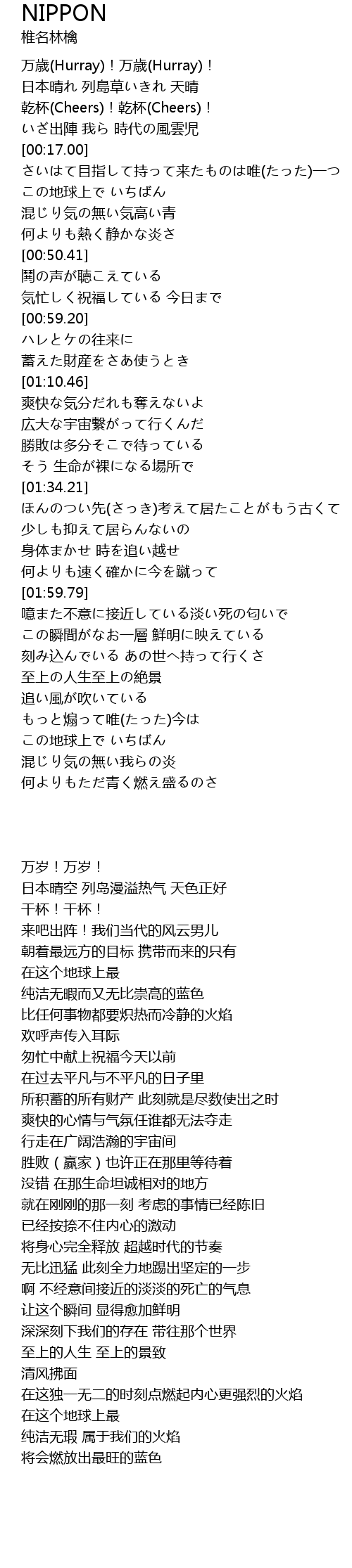 | [03:19.04] | 混じり気の無い我らの炎 |