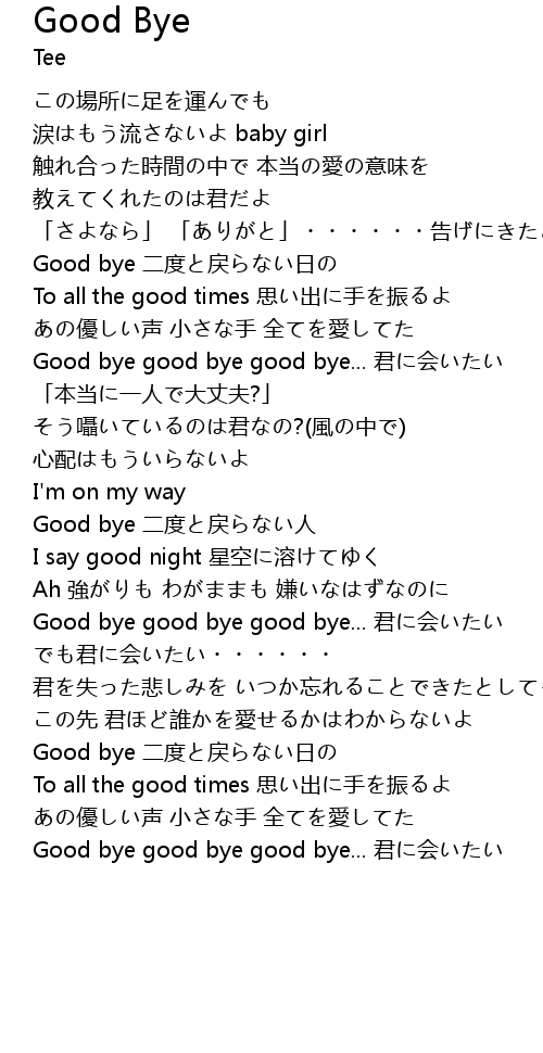| Good bye 二度と戻らない人 | |