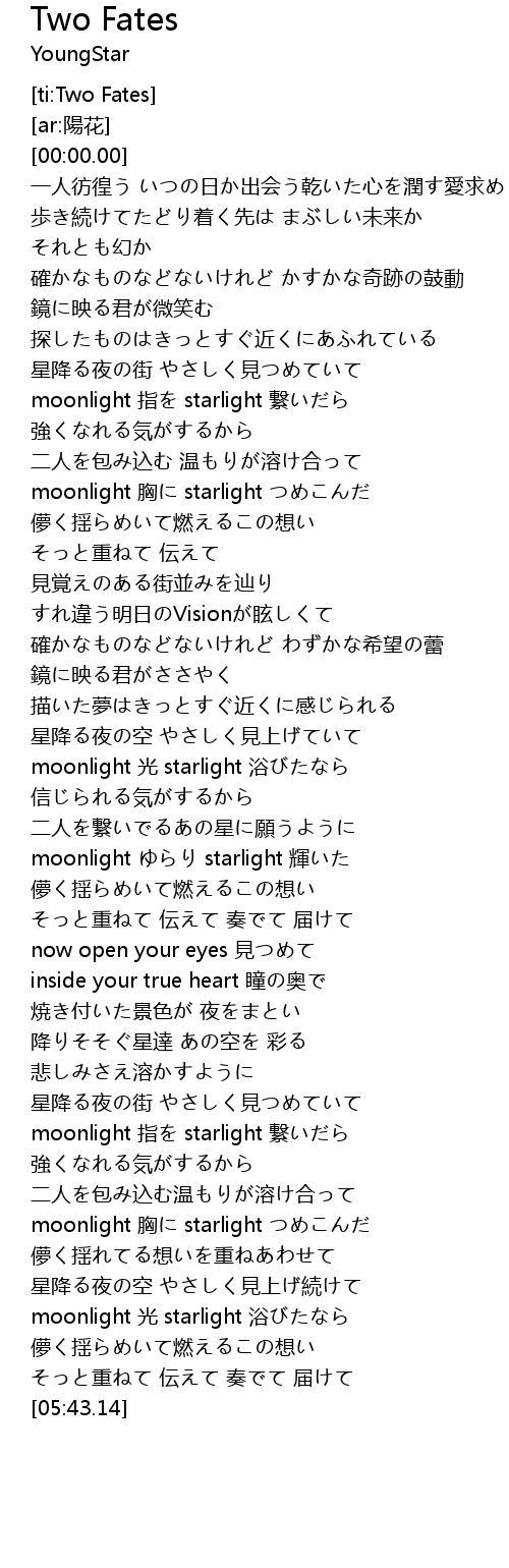 | [02:52.01] | moonlight 光 starlight 浴びたなら |
