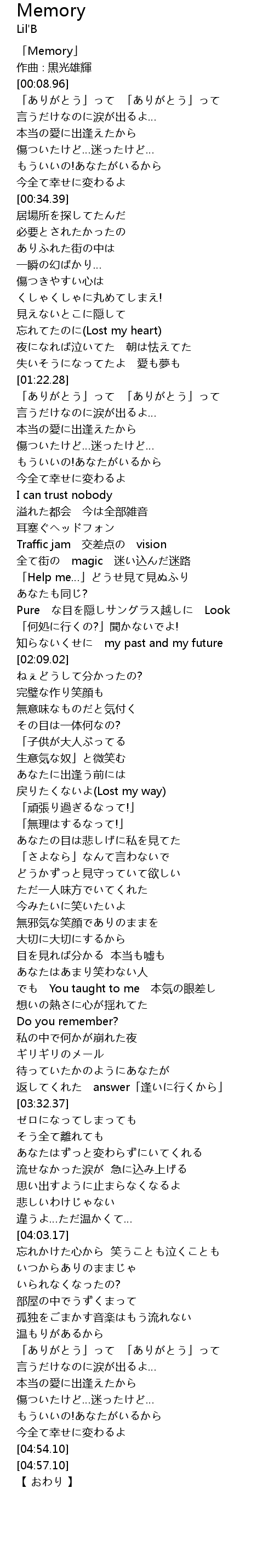 | [00:00.00] | 「Memory」 |