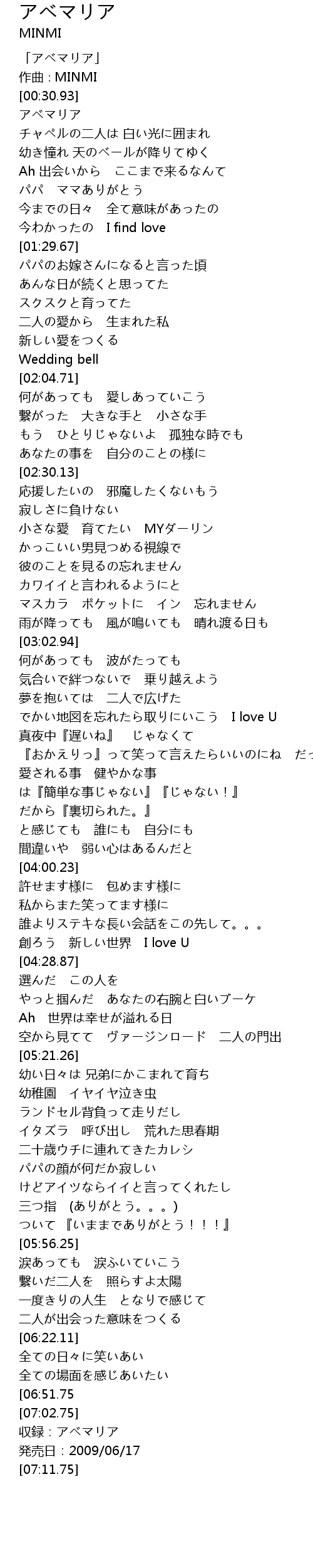 | [05:08.47] | 空から見てて ヴァージンロード 二人の門出 |