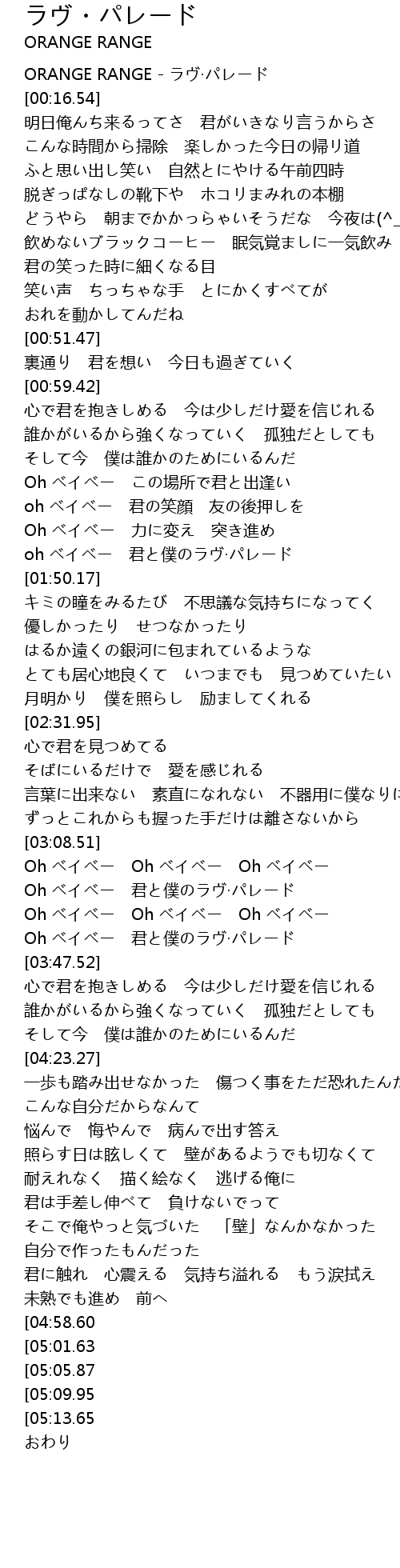 | [00:00.00] | ORANGE RANGE - ラヴ·パレード |