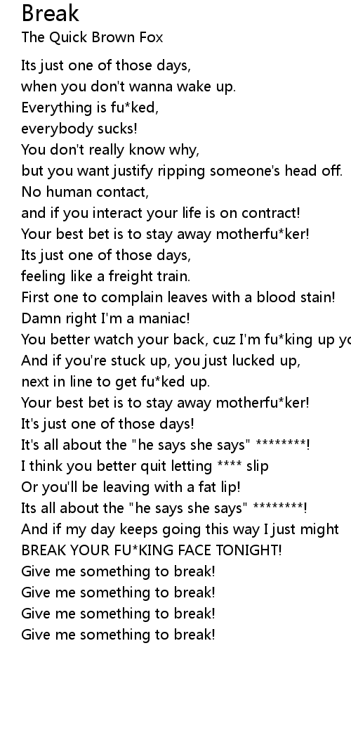 BREAK YOUR FU*KING FACE TONIGHT! |