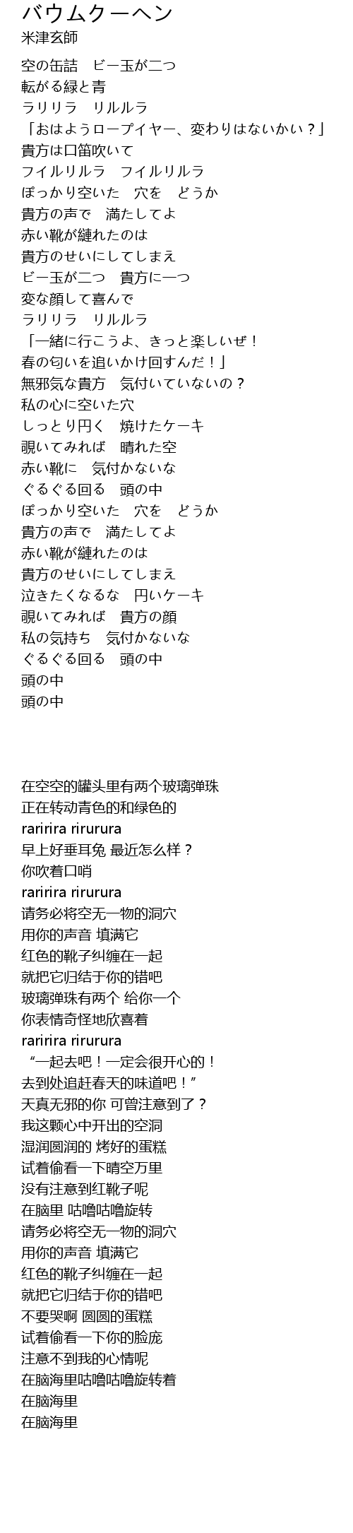| [00:17.42] | 空の缶詰 ビー玉が二つ |