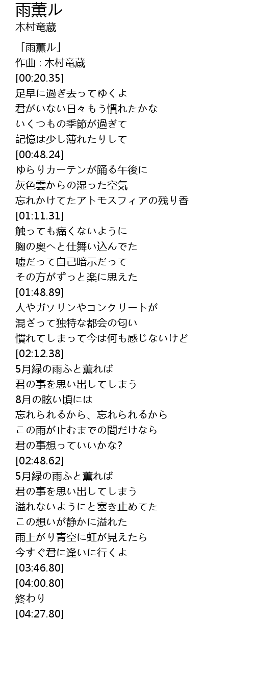 | [03:11.28] | 5月緑の雨ふと薫れば |