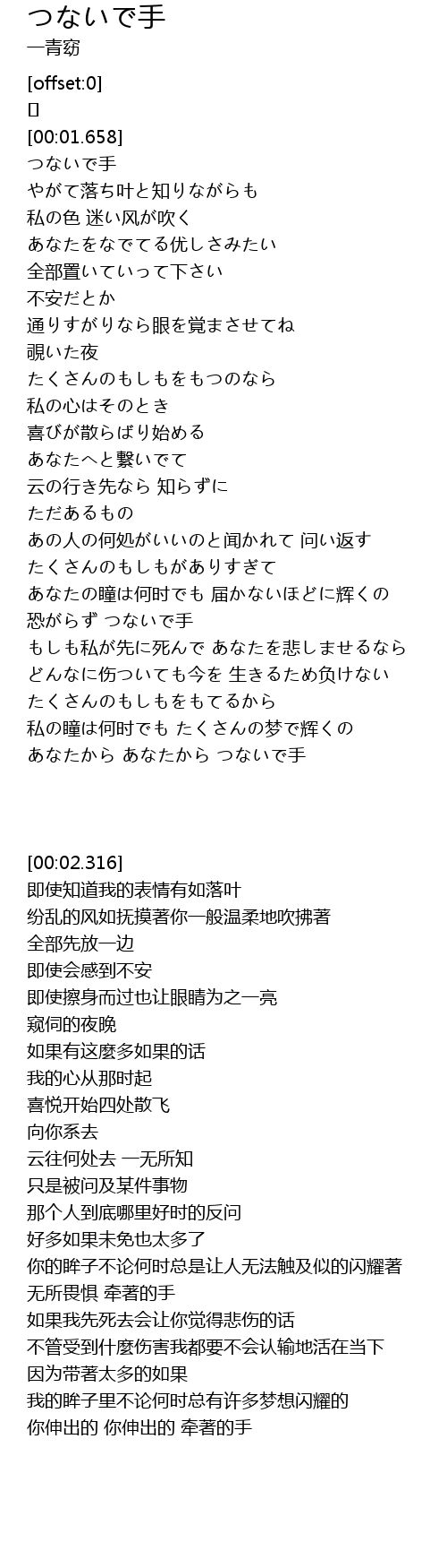 | [00:02.316] | つないで手 |