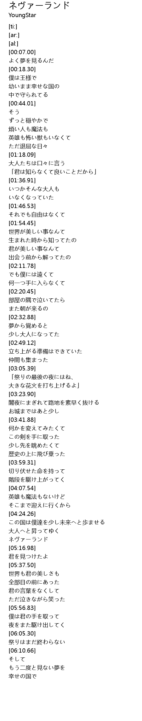 | [04:55.21] | この国は僕達を少し未来へと歩ませる |