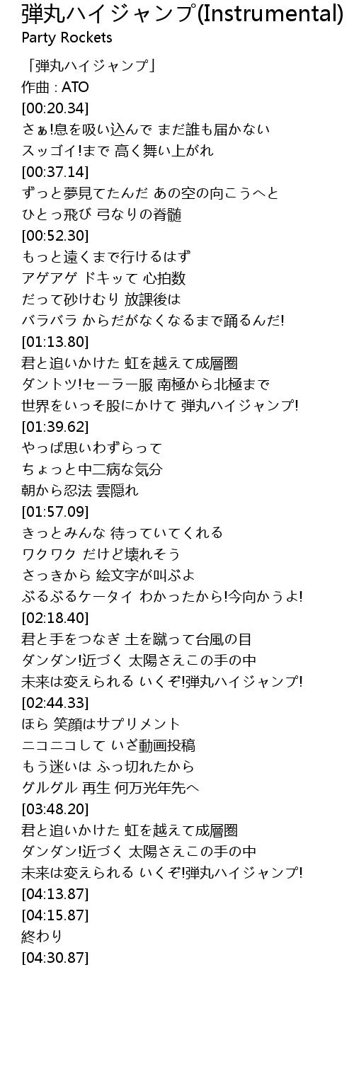 | [01:06.91] | バラバラ からだがなくなるまで踊るんだ! |