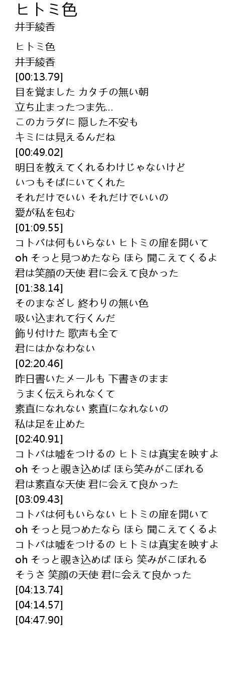 | [03:45.38] | コトバは嘘をつけるの ヒトミは真実を映すよ |