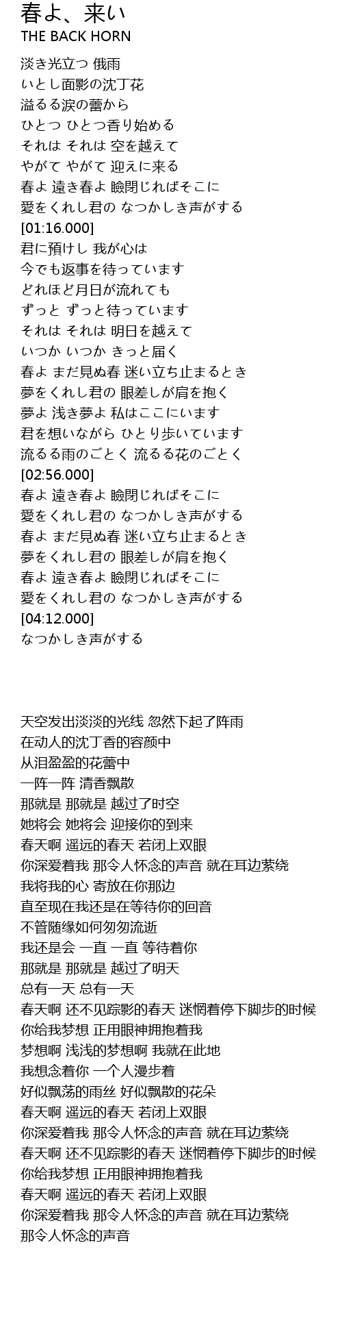 | [02:01.000] | 春よ まだ見ぬ春 迷い立ち止まるとき |