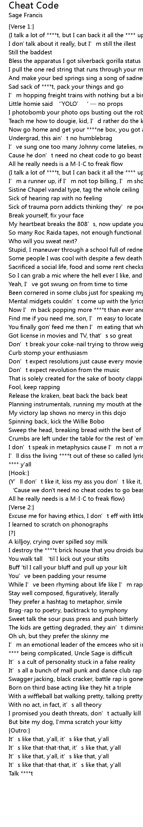 | ' Cause we don' t need no cheat codes to go beast mode | |