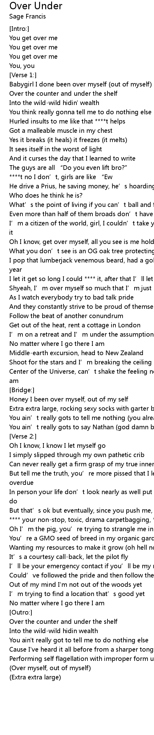 | Shyeah, I' m over myself so much that I' m just looking down on myself | |