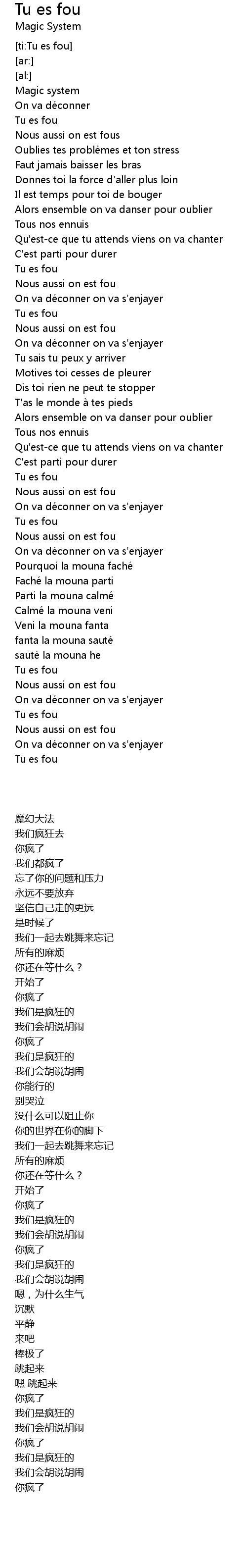 | [00:15.28] | Oublies tes proble mes et ton stress |