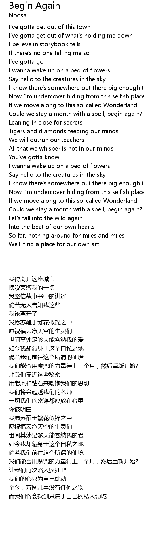 Begin Again Lyrics