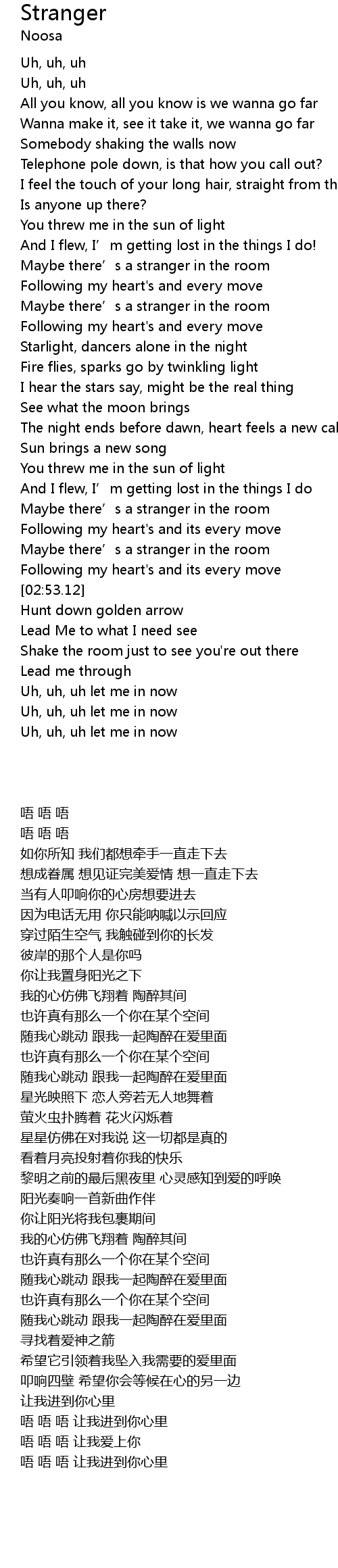 | [02:24.00] | Maybe there' s a stranger in the room |