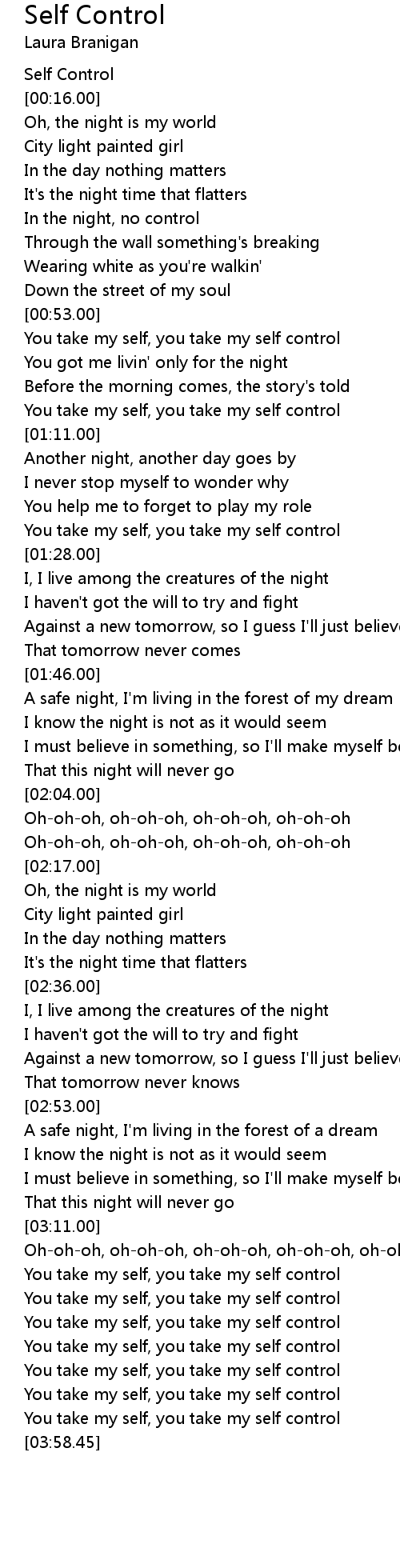 Self Control Lyrics