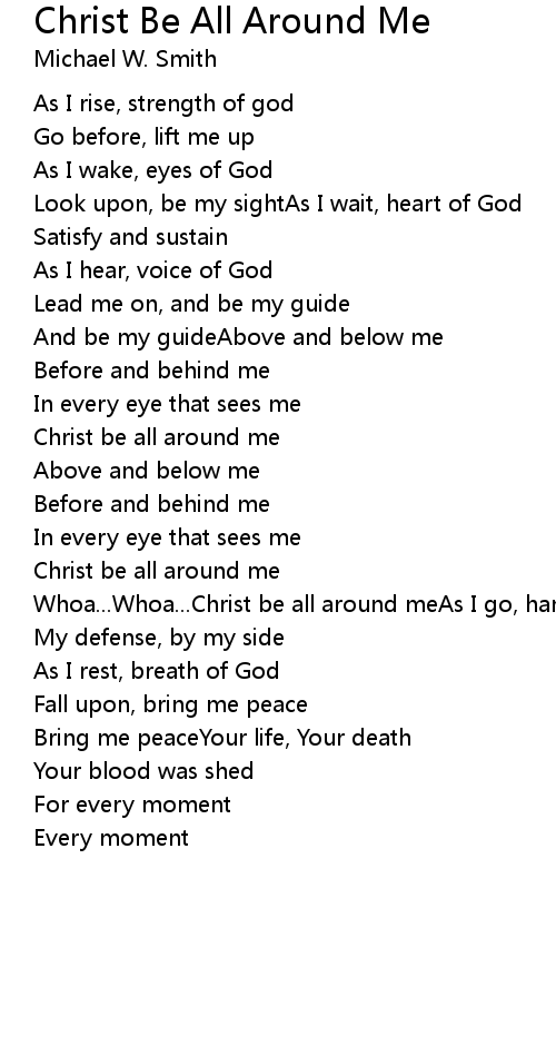 Whoa...Whoa...Christ be all around meAs I go, hand of God |