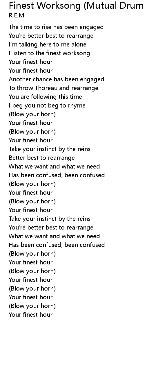 I listen to the finest worksong |