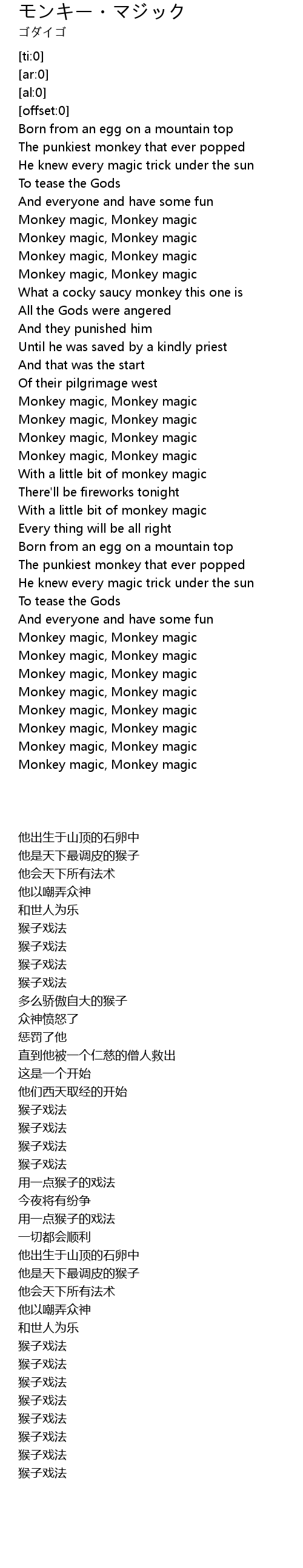 [03:02.23] Monkey magic, Monkey magic