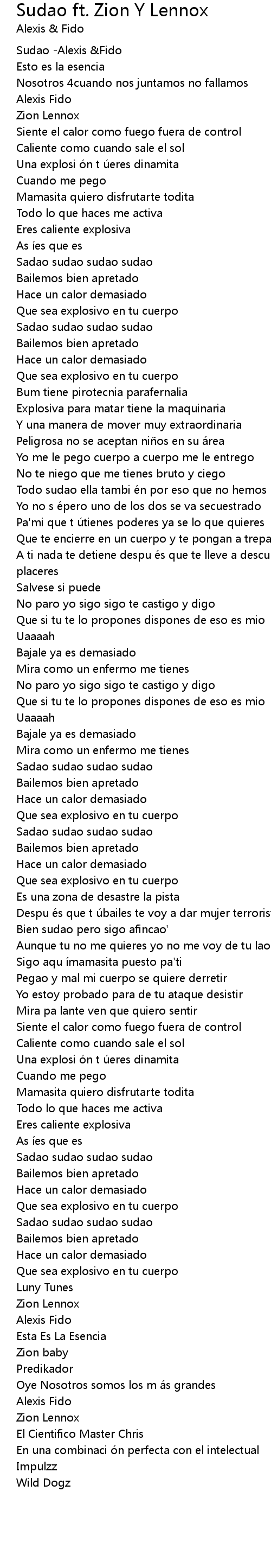 | [02:35.03] | Mamasita quiero disfrutarte todita |