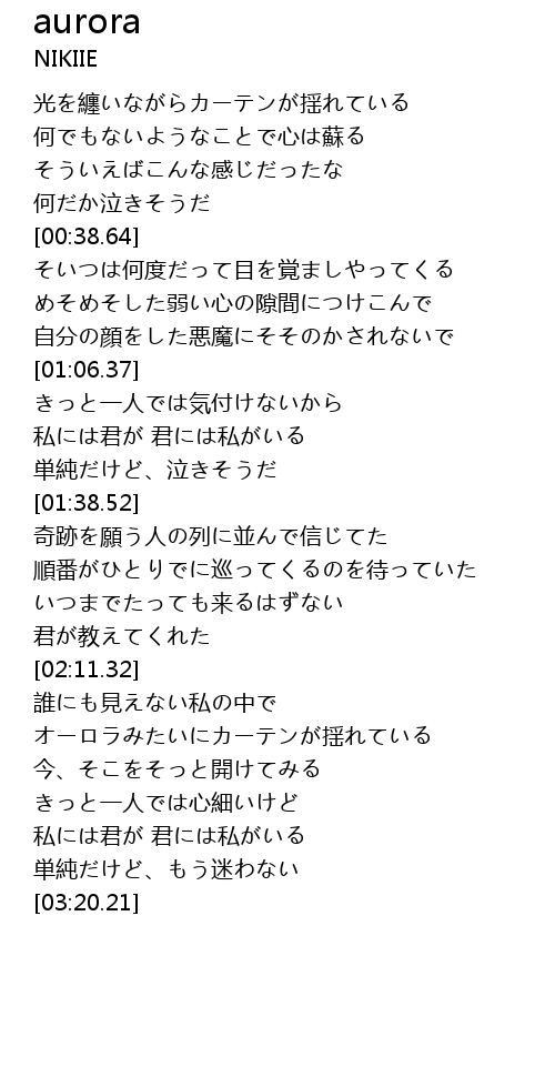 | [02:35.51] | オーロラみたいにカーテンが揺れている |