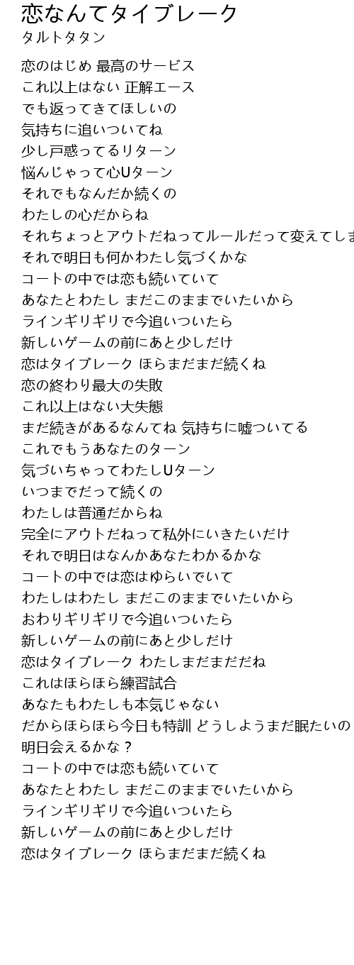 | [02:21.51] | 恋はタイブレーク わたしまだまだだね |