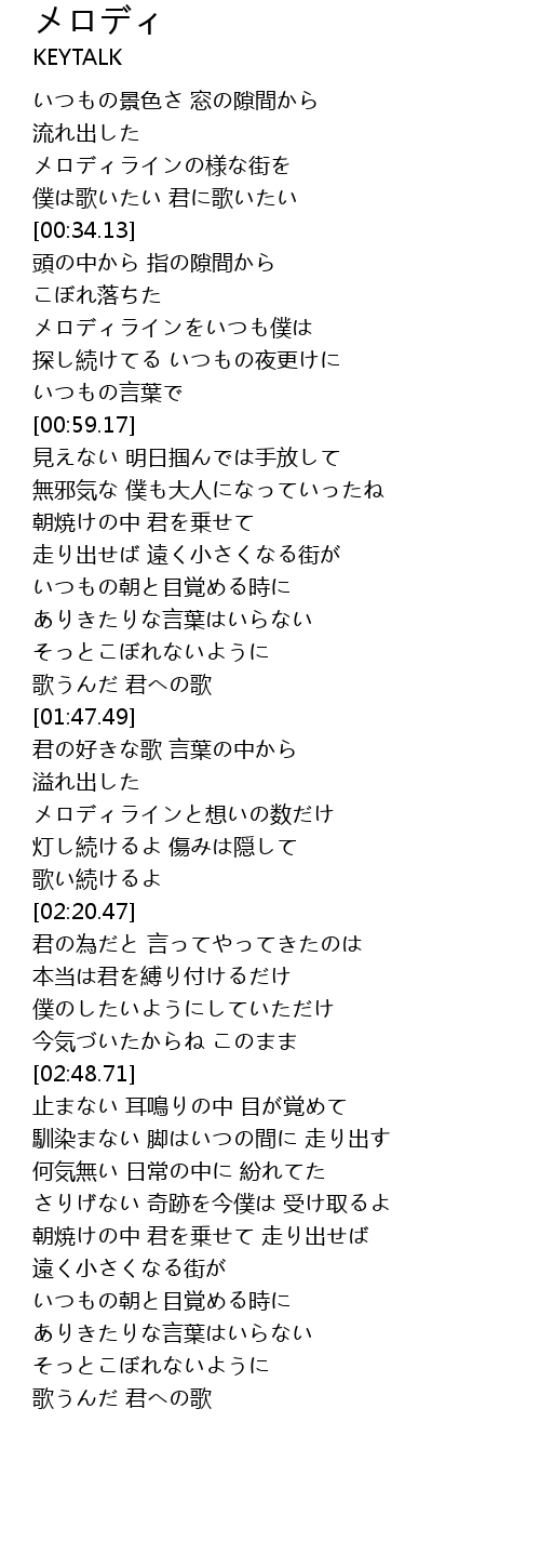 | [00:13.34] | いつもの景色さ 窓の隙間から |
