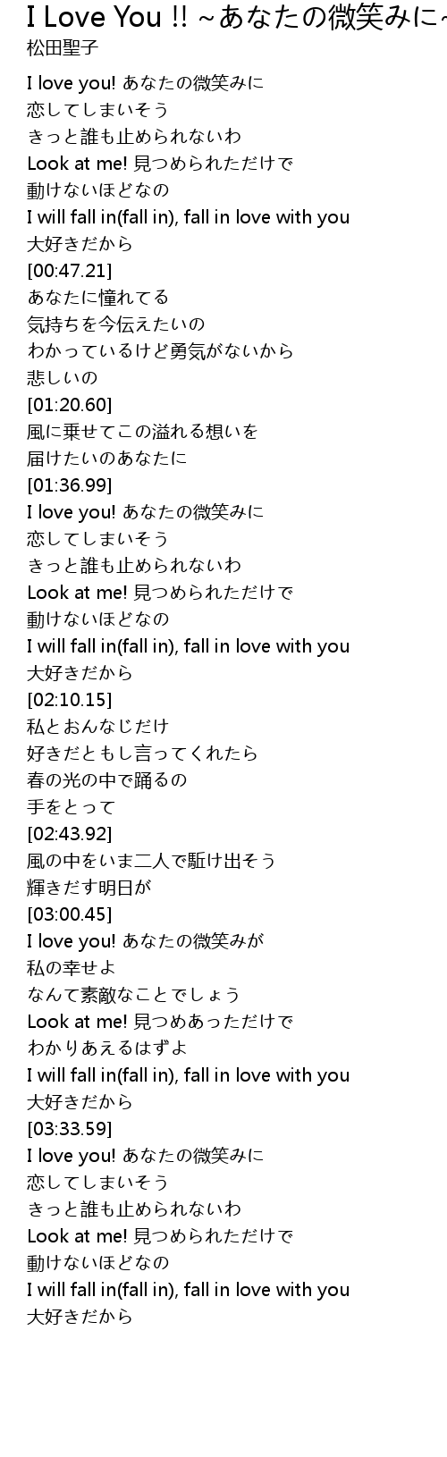 | [03:15.67] | Look at me! 見つめあっただけで |
