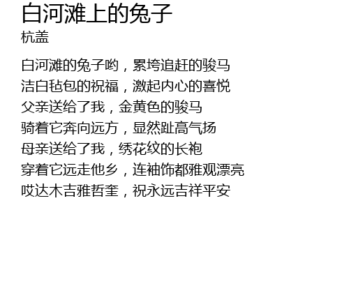 | 白河滩的兔子哟,累垮追赶的骏马 | |