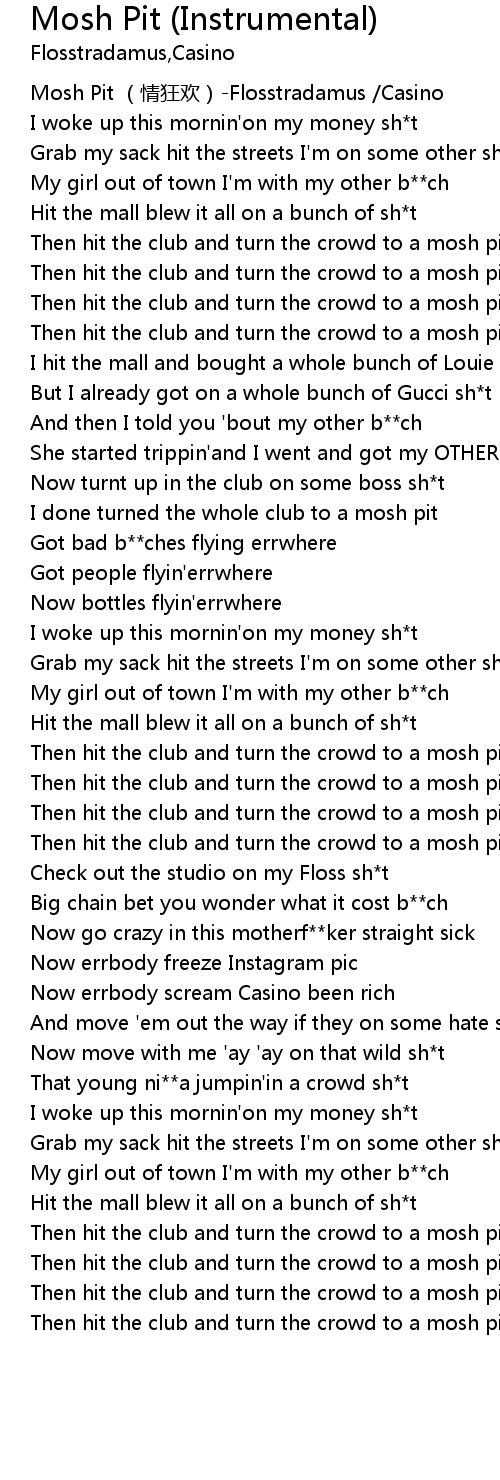 | [00:00.00] | Mosh Pit qíng kuáng huān Flosstradamus Casino |