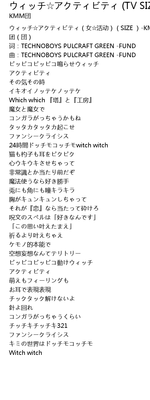 | [00:00.00] | ウィッチ☆アクティビティ(女☆活动)(SIZE )-KMM 团(団) |