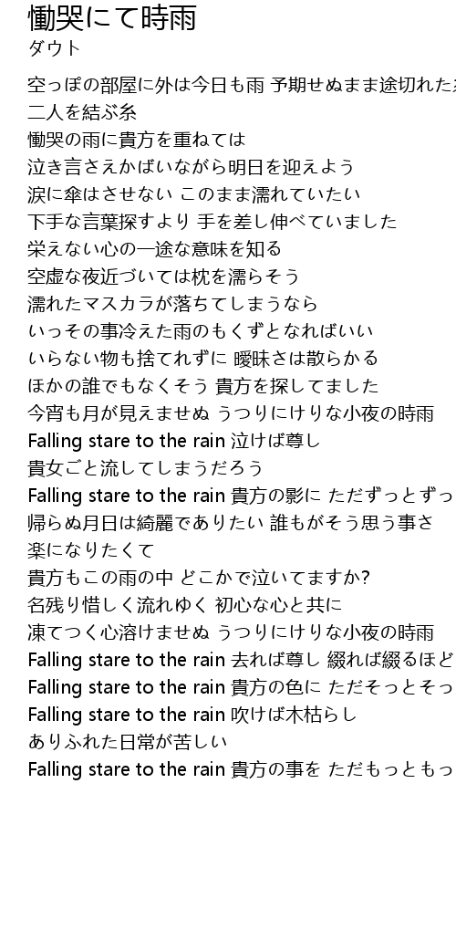 | Falling stare to the rain 泣けば尊し 貴女ごと流してしまうだろう | |