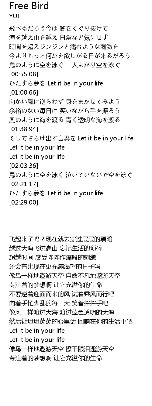| [02:06.32] | 鳥のように空を泳ぐ 泣いていないで空を泳ぐ |
