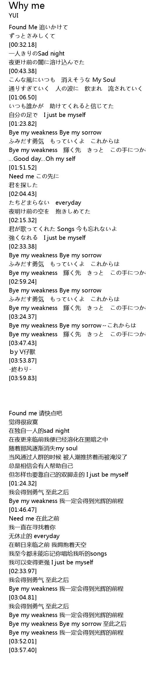 | [02:33.97] | Bye my weakness Bye my sorrow |