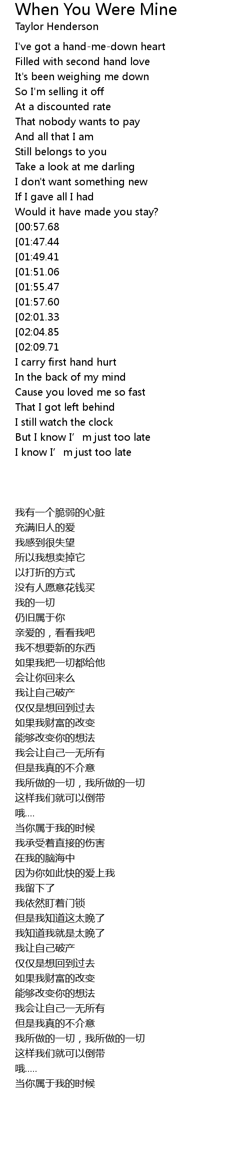 | [00:53.56][01:49.41] | If the change in my pockets |