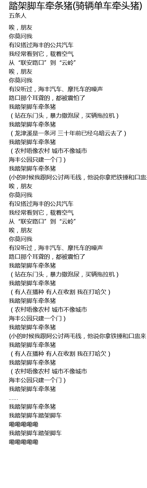 | [02:03.06] | 我踏架脚车牵条猪 |