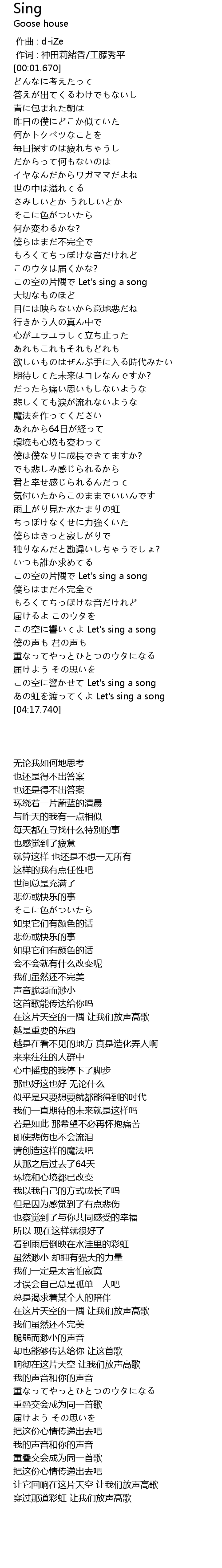 | [04:06.320] | kōng xiǎng Let' s sing a song |