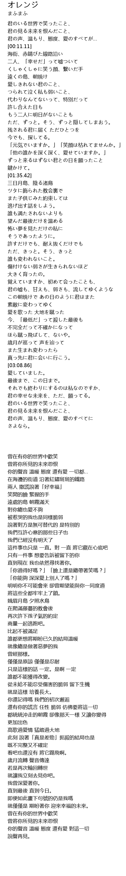 | [03:44.53] | 君のいる世界で笑ったこと、 |