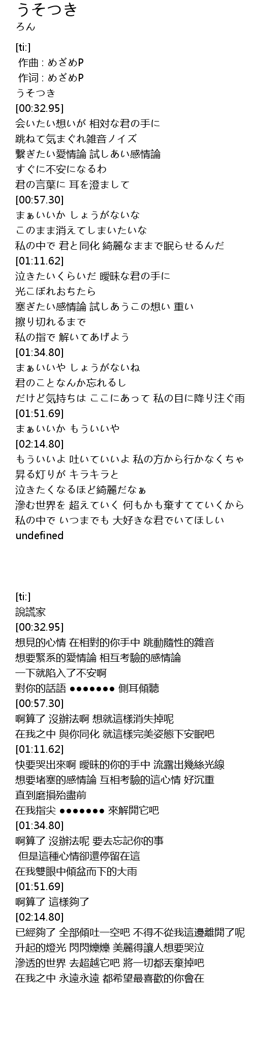 | [02:36.69] | 私の中で いつまでも 大好きな君でいてほしい |