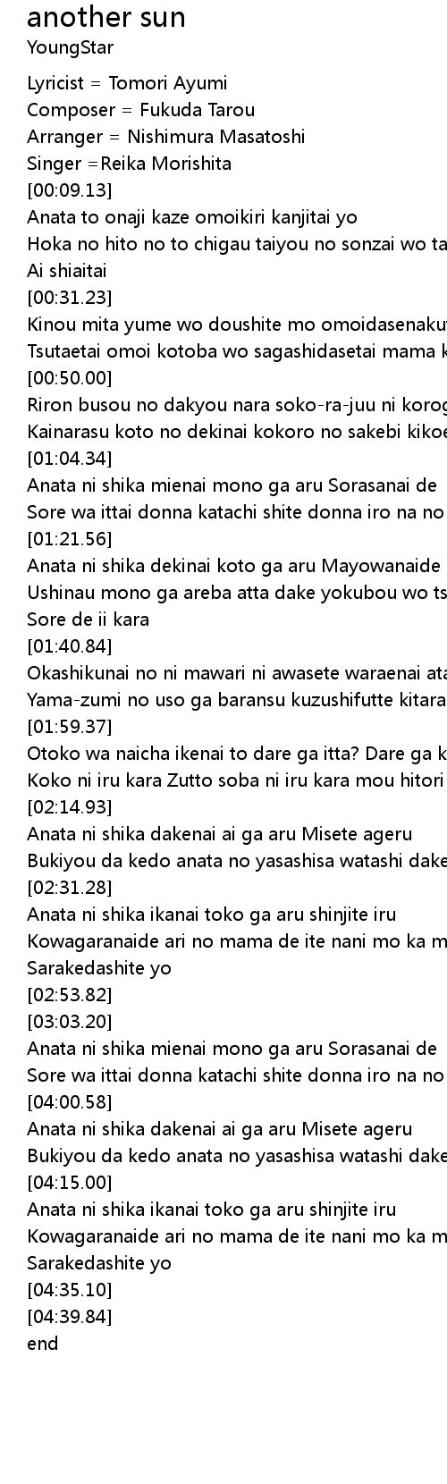 Bukiyou da kedo anata no yasashisa watashi dake ni sawarasete yo Kitto |