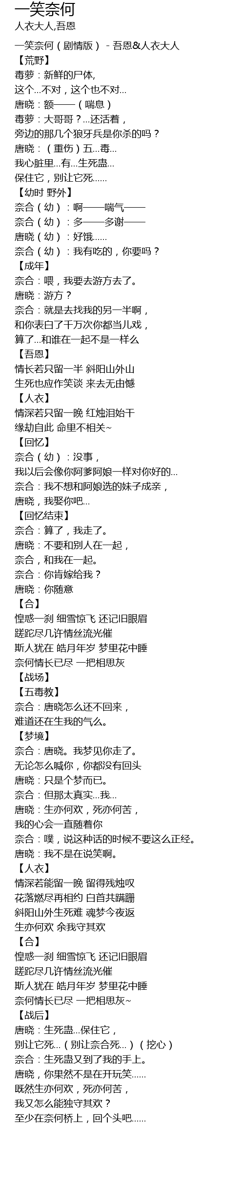 | [00:00.00] | 一笑奈何(剧情版) - 吾恩&人衣大人 |