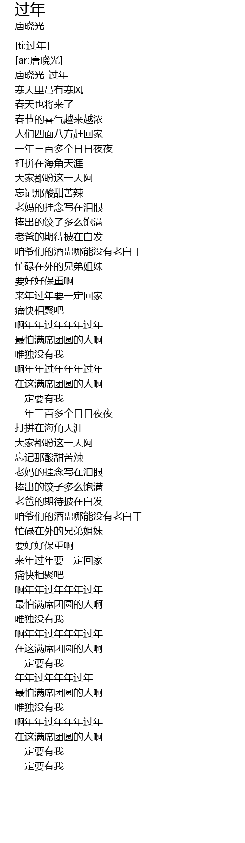 | [01:50.150] | lái nián guò nián yào yí dìng huí jiā |