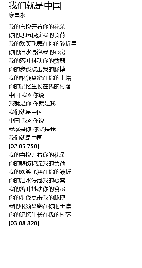 | [01:58.000] | wǒ men jiù shì zhōng guó |