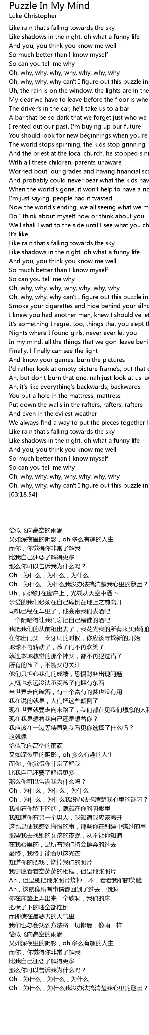 Oh, why, why, why can't I figure out this puzzle in my mind |
